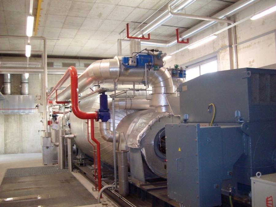 Im Fernheizwerk Ritten ist ein ORC-Modul der Firma Turboden im Einsatz. Als Wärmeträgerflüssigkeit wird hier ein Diphyl THT (Teilhydriertes Terpenyl) verwendet, welches im Betrieb bis auf eine Temperatur zwischen 300°C und 315°C erwärmt wird. Für den Antrieb der Turbine und somit auch den Stromgenerator wird als verdampfendes Medium ein Silikonöl (TURBODEN POWER 1) verwendet. Im sogenannten Verdampfer wird die Wärme an das Silikonöl abgegeben. Dieses wird mit seinem niedrigem Siedepunkt von 152°C dampfförmig mit bis 10 bar Druck über die Turbine geleitet und expandiert anschließend im Kondensator. Mit dem Fernwärmenetz wird der Kondensator gekühlt. Das Medium wird wieder flüssig und von einer Pumpe erneut zum Verdampfer geleitetet wo sich der Kreislauf schließt.